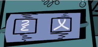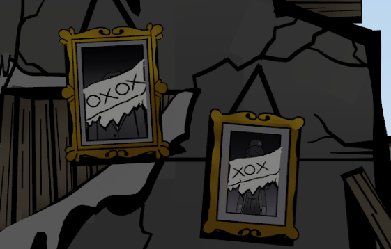 Switch back to winter and look at the wall again. Use the arrowhead once more to cut the paintings, this time, now you will see this code: