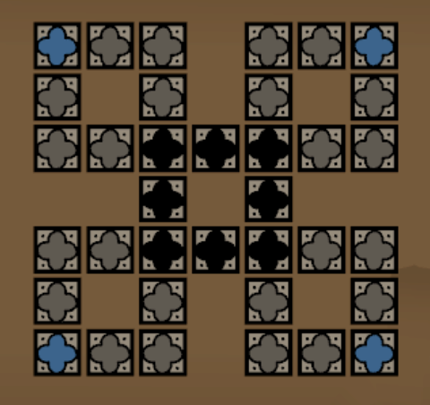 One optional strategy here would be to start with placing the blue tiles on the corners first, and then moving the black tiles to the centre.