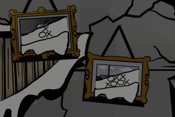 Turn right again to face the curtains, if you open them, symbols will appear on the family portrait behind you. Interesting. Take a note of that.