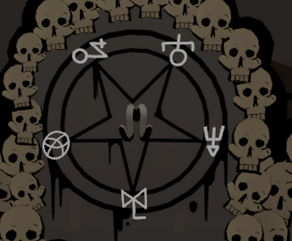 Combine the order of symbols here (from top to bottom) with the directions that can be found when you look at a circle that’s found on the wall with the altar made of skulls.
