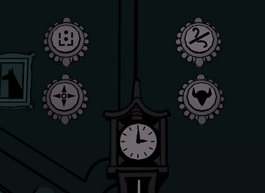 Now look to your left at the mysterious cabinet with a lever, there are three symbols here matching the ones on the family portrait, along with numbers. Using the connection between each family member and their symbol, you can assign the numbers you’ve discovered to create the correct code: 436.