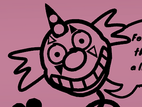 Behind you there’s a box with the logo of the Happy Happy Toys company, the same logo that appeared in the paper downstairs, remember? With the clown. Well, let’s have a look at the three pictures of a clown in the bedroom.
