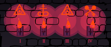 In the room with the candles, you’ll see lit torches displaying symbols. Some may be lit and some unlit